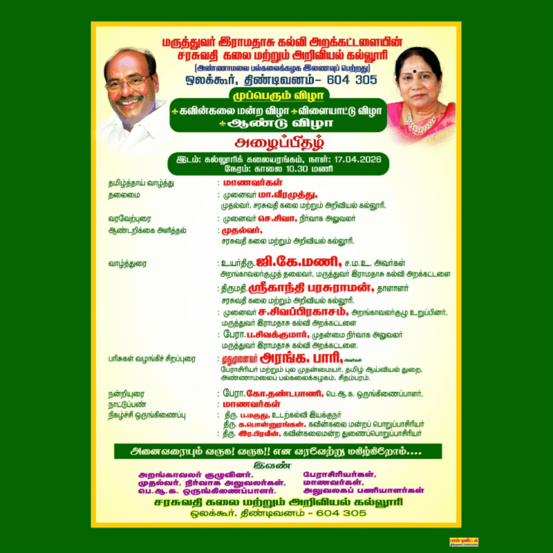Saraswathy College of Arts & Science, founded in 2008 under the visionary leadership of Dr. S. Ramadoss, has been a beacon of excellence in providing quality education in the arts and science disciplines. Over the past decade and a half, the college has nurtured exemplary graduates who have contributed significantly to various fields.